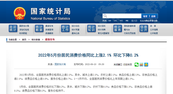 6月10日,国家统计局公布数据显示,5月份全国CPI(居民消费价格指数)环比下降,同比涨幅与上月相同,PPI(工业生产者出厂价格指数)环比和同比涨幅均继续回落。